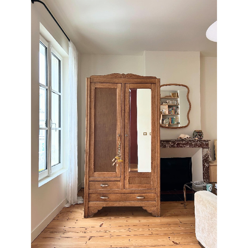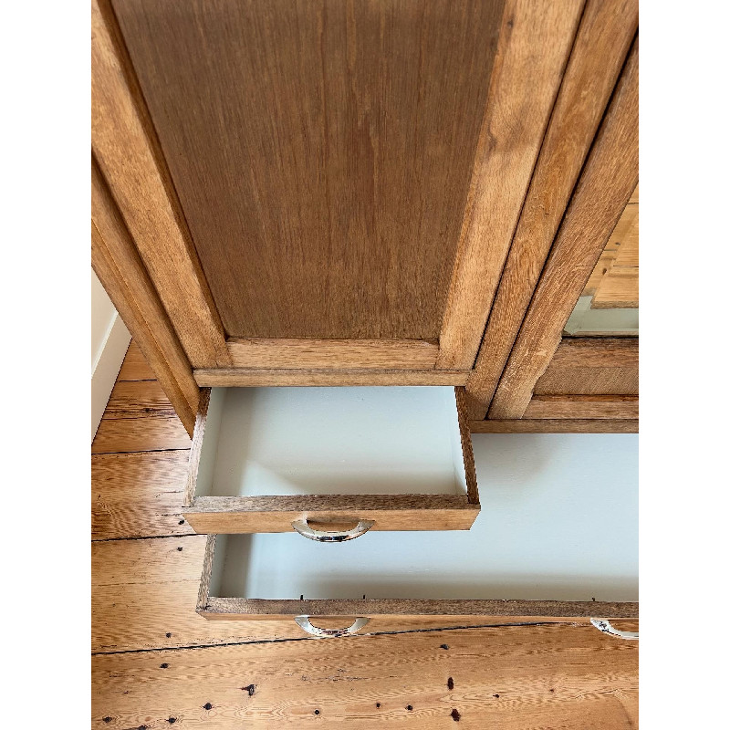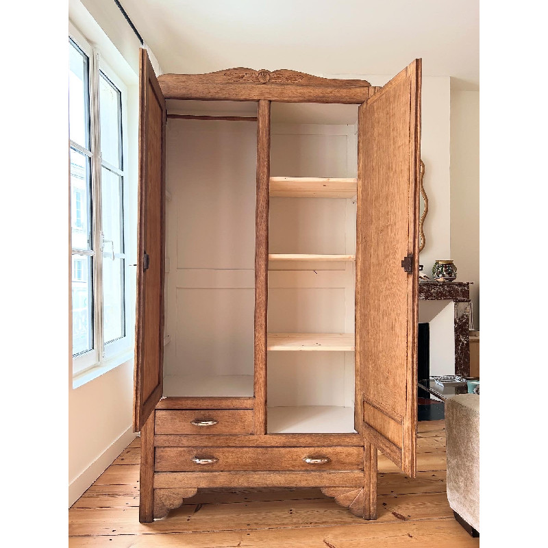Belle armoire de style Art Déco 2 portes, 2 tiroirs en chêne. Cette armoire a été entièrement rénovée.