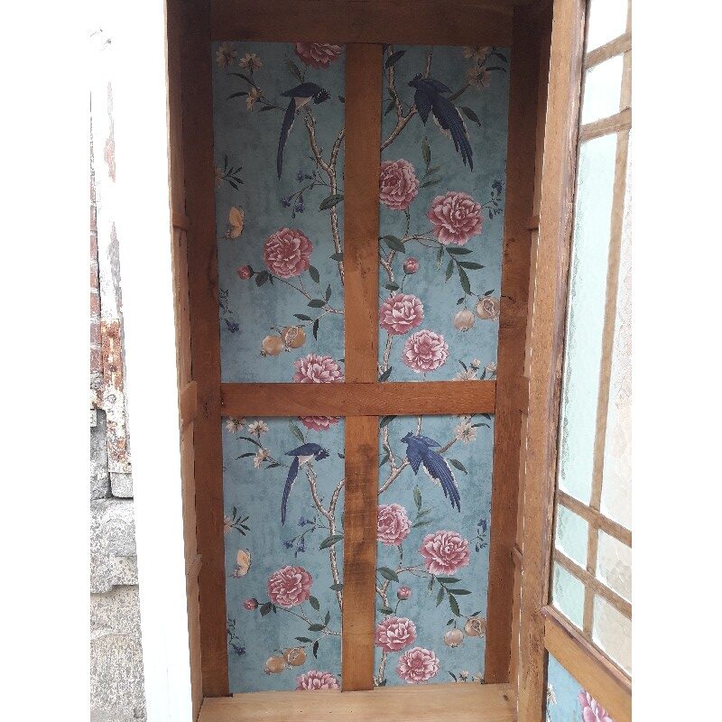 L’intérieur fond et l’intérieur des portes a été aménagé d’un papier à décor de fleurs et oiseaux.