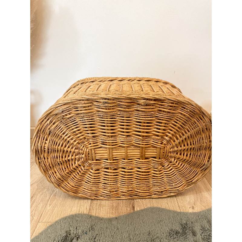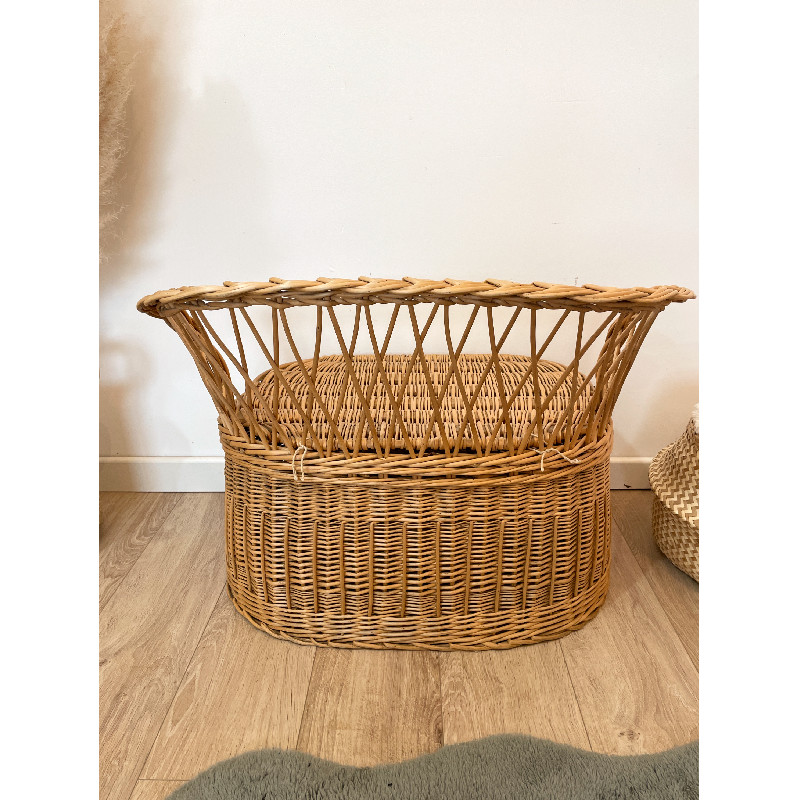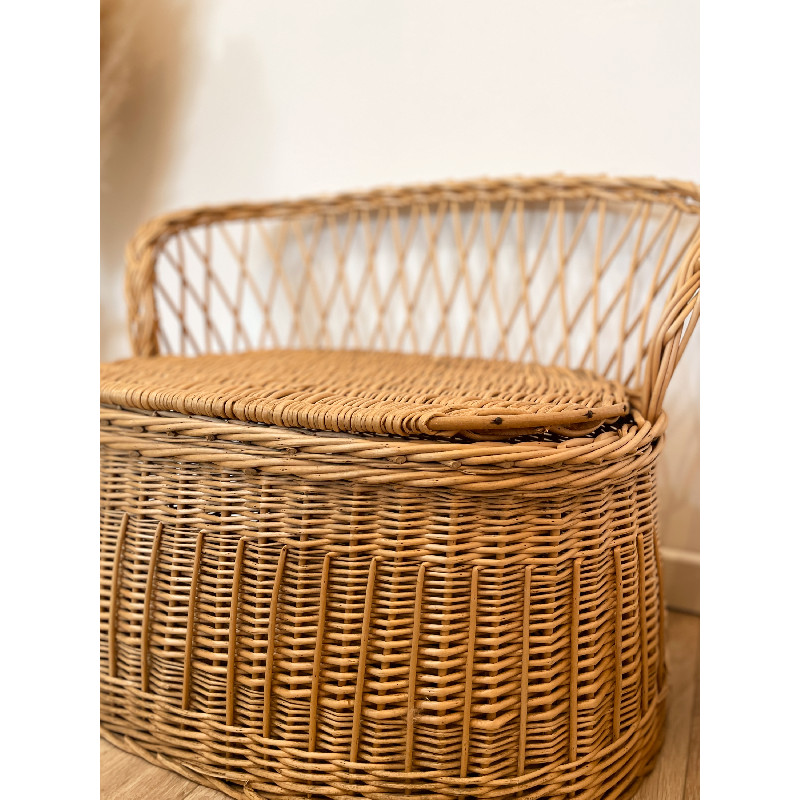 Elle est en rotin avec un très beau travail de vannerie, datant des années 1970. Cette banquette est en très bon état.