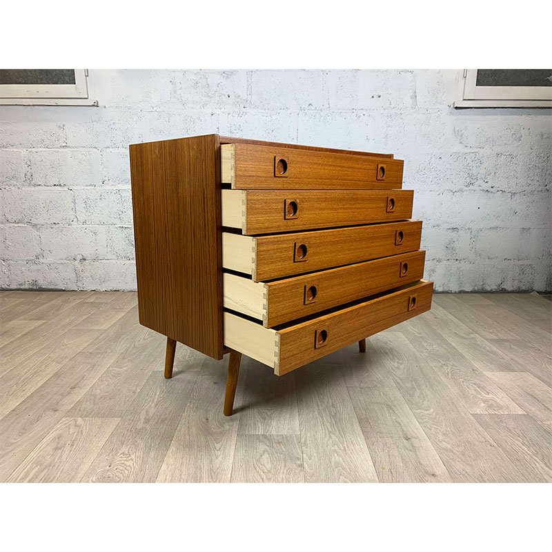 Commode 5 tiroirs scandinave, années 60