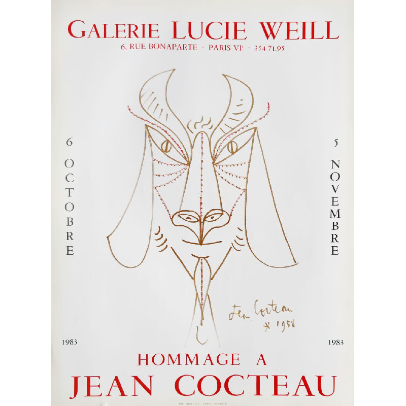 Jean COCTEAU Affiche GALERIE LUCIE WEILL 1983 - Capharnaüm