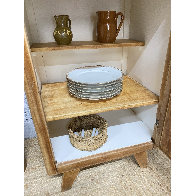 L’intérieur est peint en blanc pour faire ressortir ses deux étagères, une petite et une grande, qui ont été huilées.